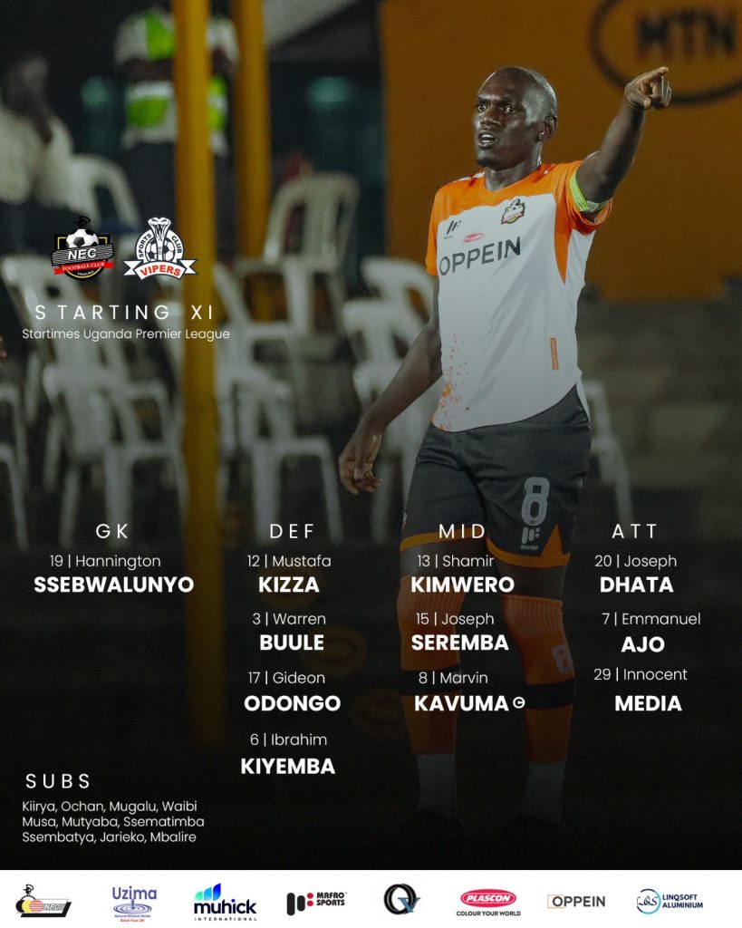Two changes have been made to the Starting XI that played to a one-all draw against Maroons in Luzira as Seremba comes in for Shabene while Kavuma replaces benched Allan Mugalu in the midfield.